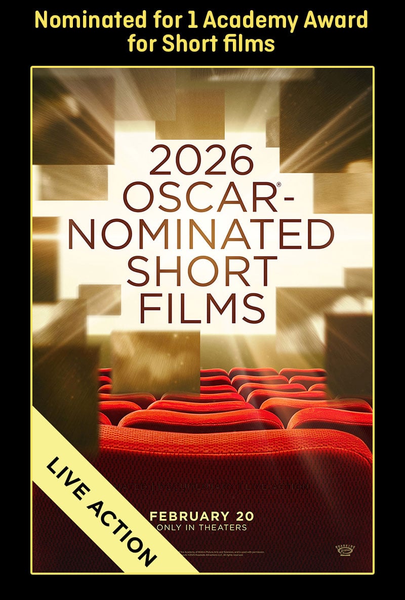 Showcasing the best short films from around the world, the 2026 Oscar®-Nominated Shorts presents feature-length programs dedicated to each Academy Award® Short Film category: Animated, Documentary and Live Action.